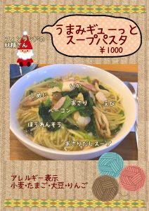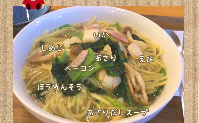 「うまみギューっとスープパスタ」 1,000円は、あさりだしのスープにイカやエビ、ほうれん草にしめじなどの旨味を詰め込んだ一品。